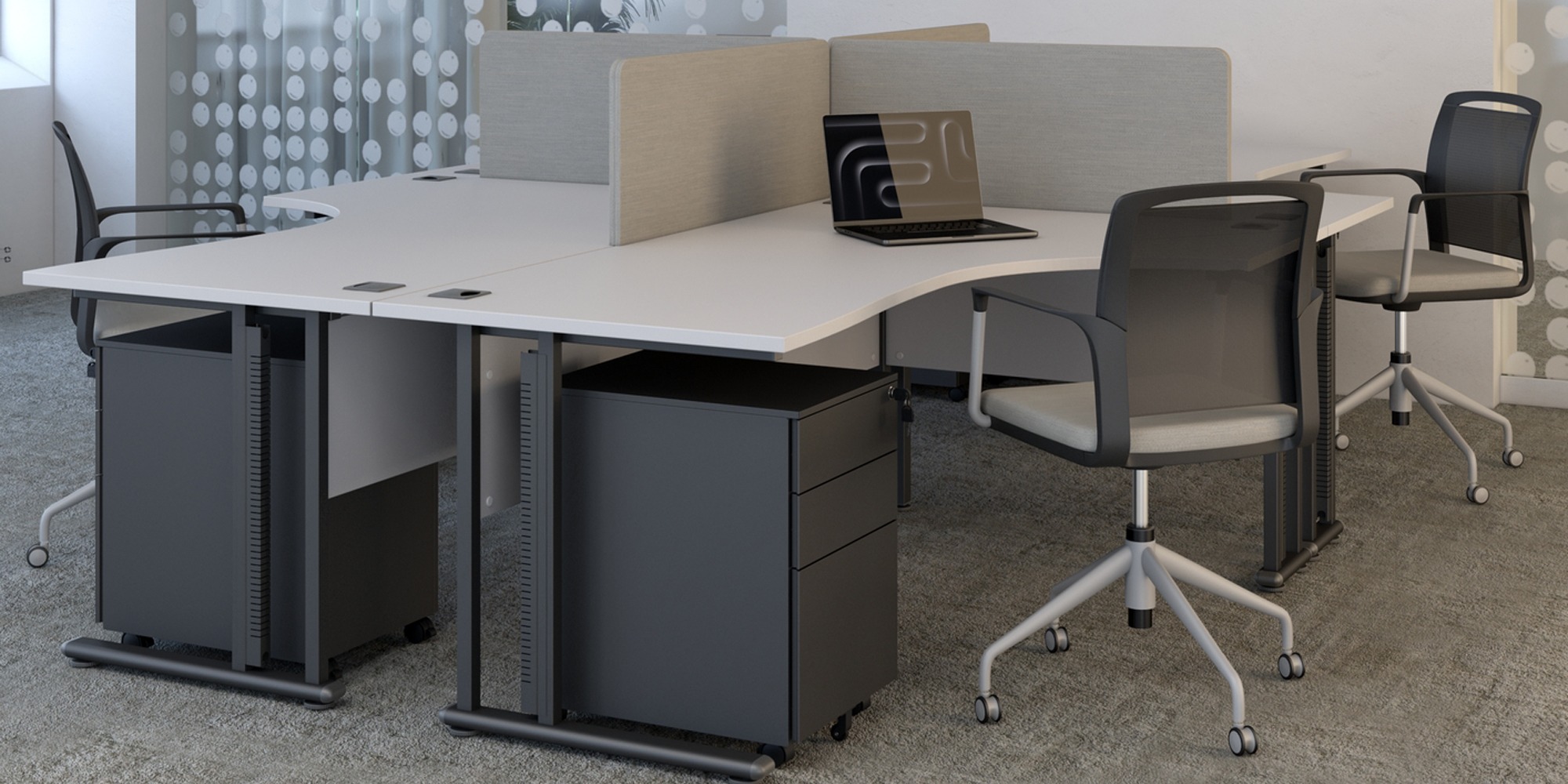 Flexi is a desk range defined by clean lines, strength, and thoughtful engineering. Its slimline frame and distinctive double upright cantilever leg create a light, contemporary silhouette designed to sit effortlessly within modern workspaces while delivering exceptional stability.