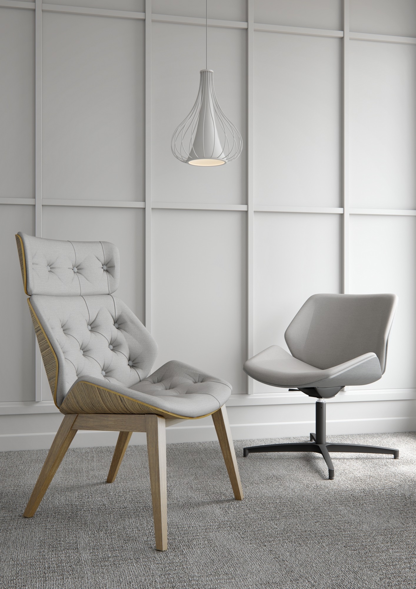 The Cascara family consists of a high back and medium back chair with a choice of white lacquered outer shell, walnut veneered outer shell or a fully upholstered variant, each available on a choice of six different base options, some of which include an optional integrated tilt mechanism, further increasing the chairs functionality and comfort.