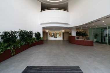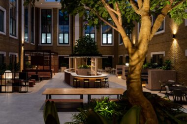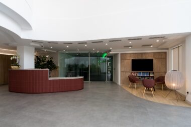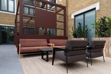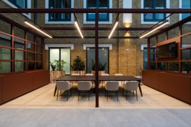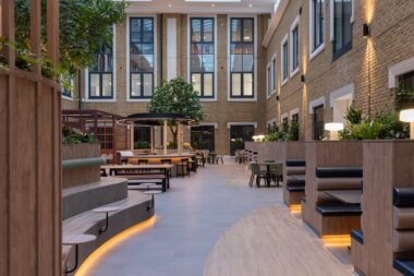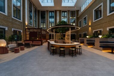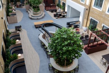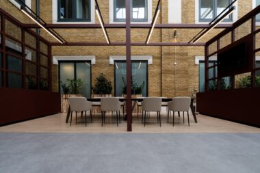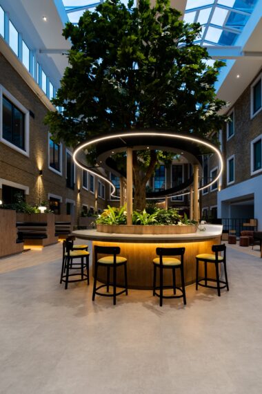 Fit-out of the 74,000 sq ft building was delivered by interiors and refurbishment specialists, C&S Ltd. The space comprised three floors of office space and a shared amenities hub built within a new atrium space that brought an original outdoor courtyard, inside for year-round use.