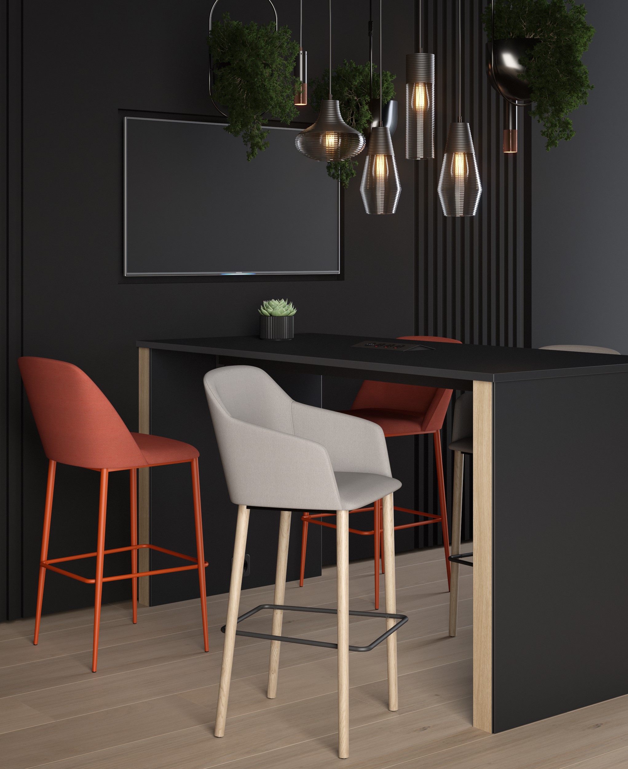 To complement its multi-purpose chair variant, the stool is available on either a metal or wooden four-legged frame with an integrated footrest for further seated satisfaction.
