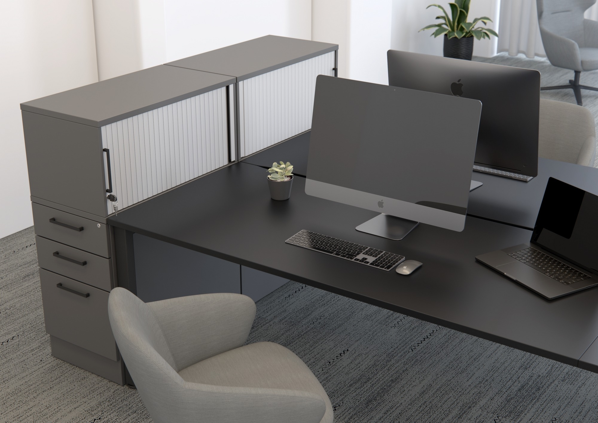 Tambour Fronted Pedestal-Top Storage Unit