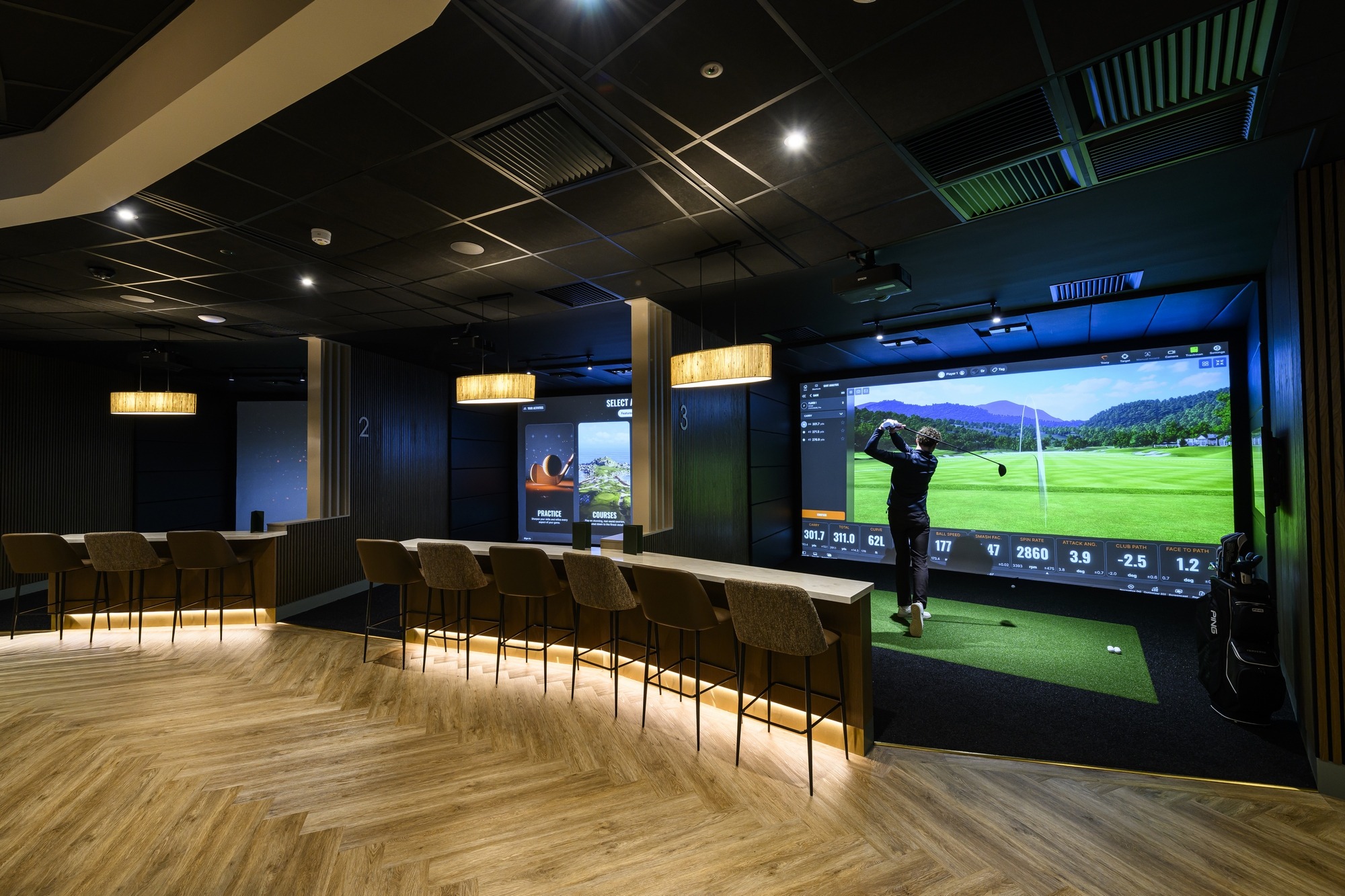 The completed venue delivers a premium indoor virtual golf experience that successfully balances performance with hospitality. It stands as a strong example of how thoughtful design, quality craftsmanship and attention to detail come together to create welcoming environments within exciting, experience-led destinations.