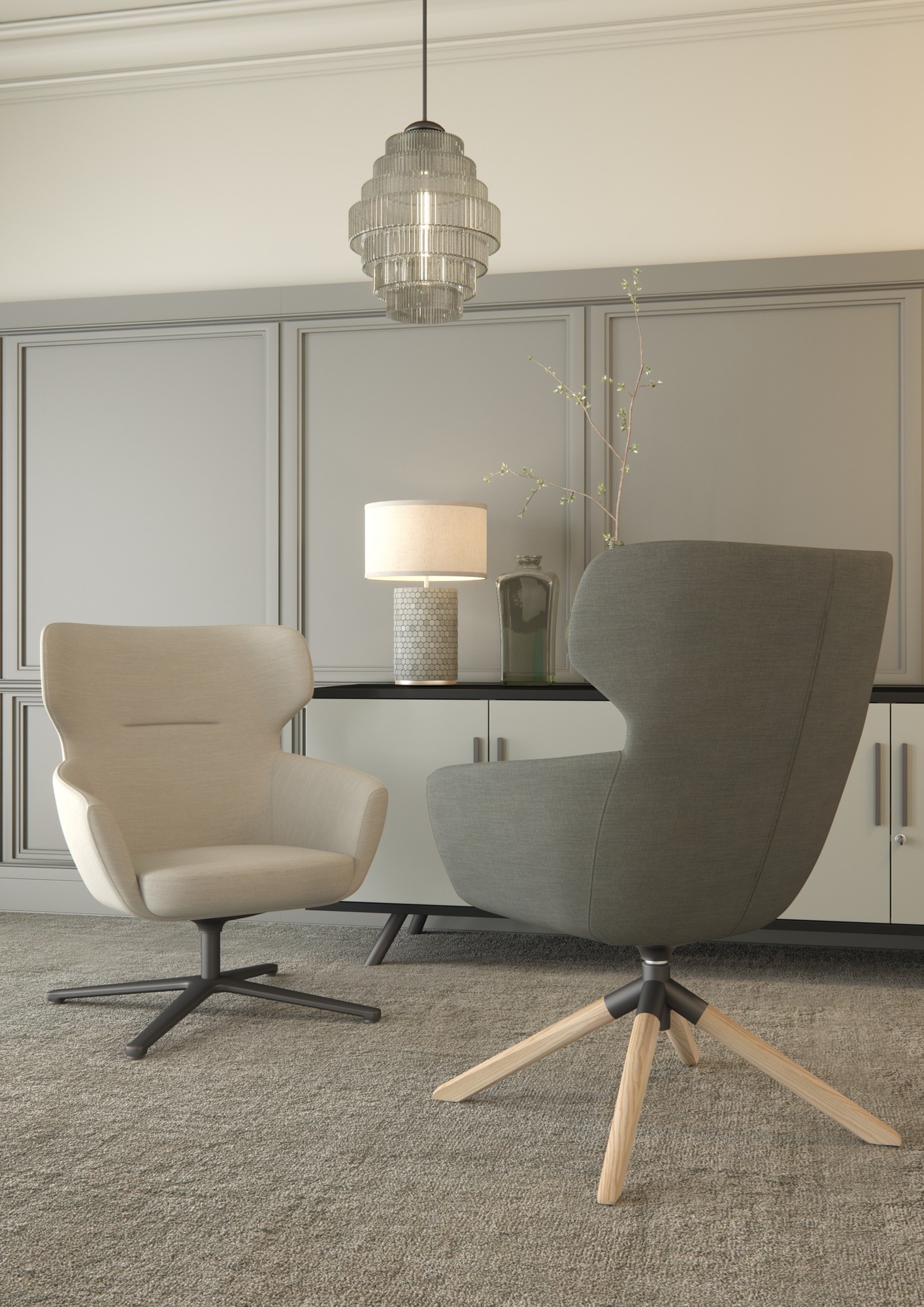 The sleek, winged sides offer added support and a touch of sophistication, creating a cosy yet modern seating experience. Whether you’re designing a relaxed lounge for employees to unwind, a collaborative space for students, or a welcoming corner for guests, Raya delivers both functionality and elegance.