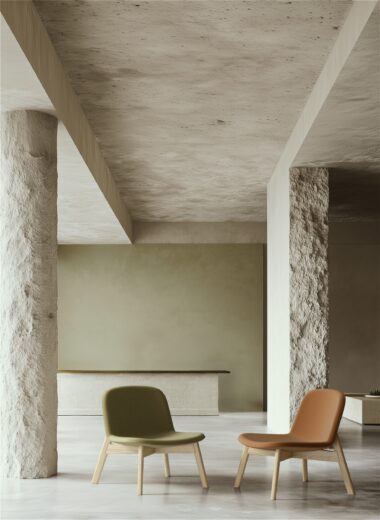 A refined trio of seating designed for adaptability across environments –flexible workspaces, hospitality interiors and educational settings. The lounge chair features a low reclined profile with a generous seat and gently wrapped backrest.